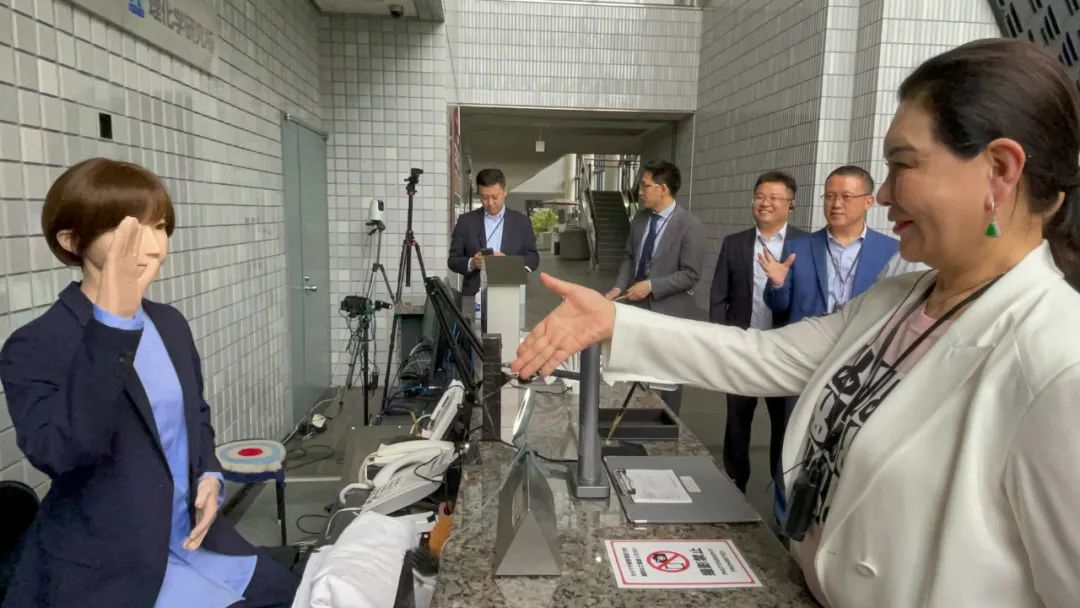學習團團員津東·嘉誠集團董事長付敏英與“阿凡達”人型機器人互動
