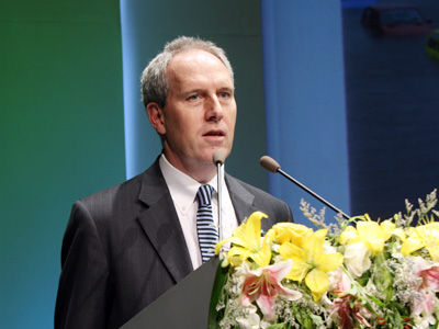 2009年4月22日,由中國企業(yè)家俱樂部和道農(nóng)研究院、《綠公司》雜志主辦的“2009中國綠色公司年會(huì)”在北京索菲特大飯店召開。圖為宜家家具亞太區(qū)總裁Ian Duffy做閉幕演講。