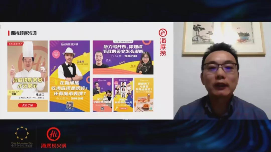 2020年4月17日,中國企業家俱樂部舉行首期“線上綠盟圓桌會”,邀請俱樂部理事、海底撈董事長張勇、海底撈執行董事施永宏、海底撈首席戰略官周兆呈、海底撈執行董事邵志東四位嘉賓在線進行了一場“疫情中的海底撈和疫情外的企業管理”的主題分享。中國企業家俱樂部秘書長程虹主持了會議。