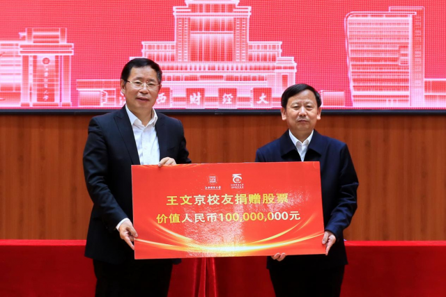 用友網絡科技股份有限公司董事長兼CEO王文京捐贈1億元公司股份資助江西財經大學的教育事業建設與發展。