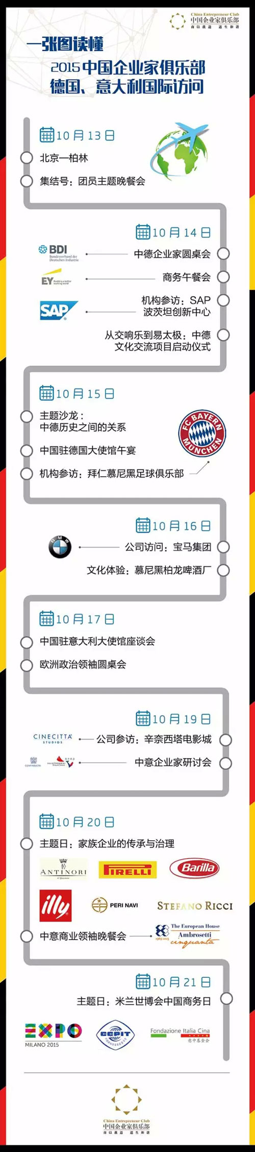 兩位外交官之所以會接連向中國企業家俱樂部送出禮物和祝福,是因為這個機構即將開啟他們的第五次國際訪問——10月13日-22日,中國企業家俱樂部代表團的企業家們將先后訪問德國和意大利。