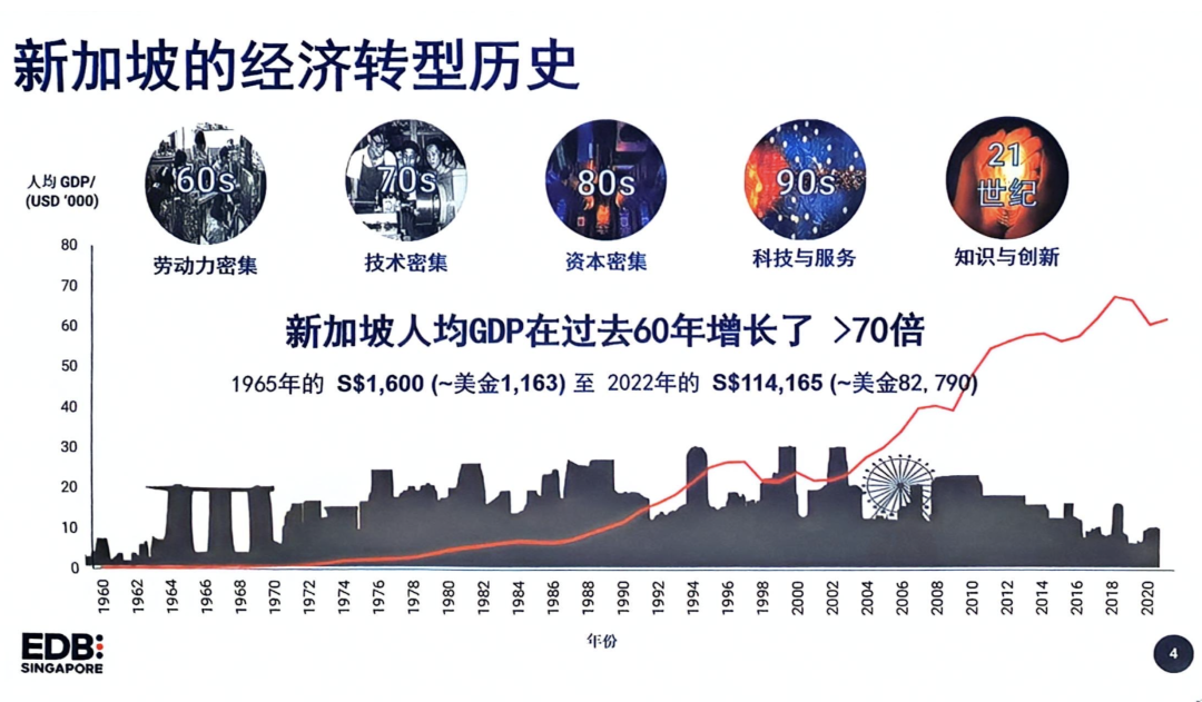 新加坡EDB向綠盟企業家們詳細介紹了新加坡歷次經濟轉型發展的歷程,從上世紀60年代的勞動密集型產業開始,依靠技術和資本的不斷積累發展,一步步進行產業轉型升級,經過60年的時間,創造了人均GDP增長70倍的非凡成就。